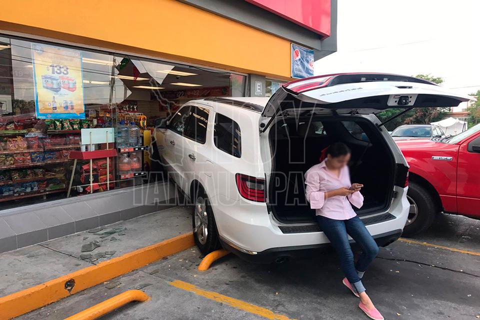 Matamoros, Tamaulipas.- Una mujer se metió con todo y camioneta que manejaba a una tienda de conveniencia en Matamoros, ya que al parecer confundió el freno con el acelerador.