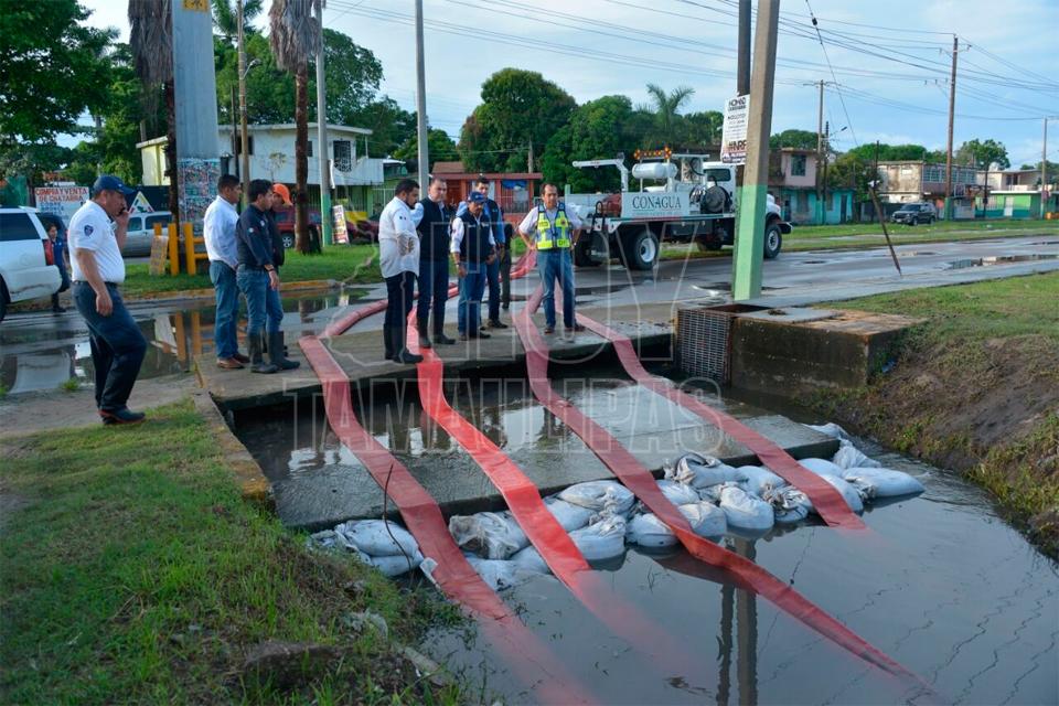 Ciudad Madero, Tamaulipas.- La laguna Nuevo Amanecer se desbordó este medio día, inundando viviendas aledañas del sector Lucio Blanco de Ciudad Madero.