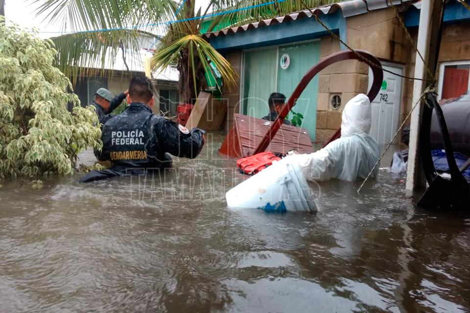 Pedro Granados, director de Protección Civil del Estado, informó que de manera coordinada, la dependencia a su cargo, la Secretaría de la Defensa Nacional, Secretaría de Marina y la Comisión Nacional del Agua (Conagua), realizaron trabajos para desalojar el agua de los sitios inundados con la utilización de maquinaria.