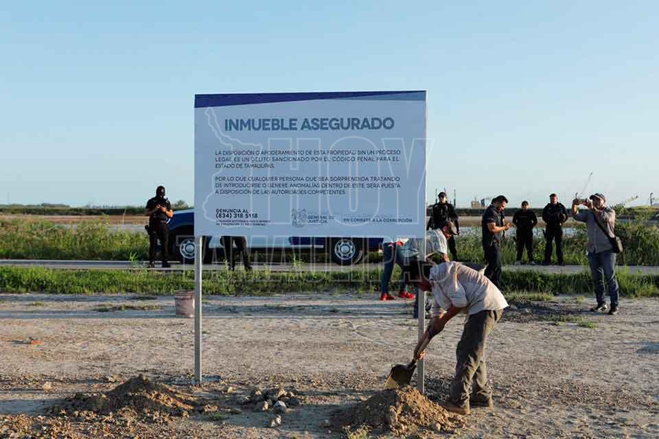 “La disposición o apoderamiento de esta propiedad sin un proceso legal es un delito sancionado por el Código Penal para el Estado de Tamaulipas. Por lo que cualquier persona que sea sorprendida tratando de ingresar o generar anomalías dentro de esta, será puesto a disposición de las autoridades competentes”.