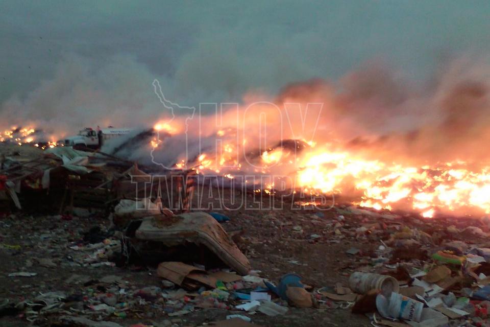 Ciudad Victoria, Tamaulipas.- Un incendio de gran magnitud se registra desde la noche de ayer en el basurero municipal de Ciudad Victoria.
