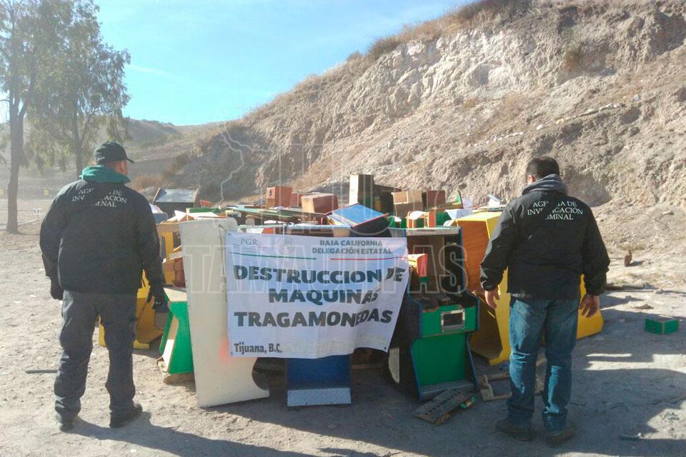 Tijuana, Baja California.- La Procuraduría General de la República (PGR), en su Delegación en Baja California, llevó a cabo la destrucción de 50 máquinas tragamonedas, aparatos mejor conocidos como “mini casinos”, asegurados en diversos operativos en el estado.
