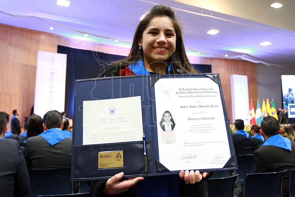 México, (Notimex).- Para Dafne Almazán si la noche de este lunes hubiera tenido una canción de fondo sería "We Are de Champions", de Queen, no sólo para ella, quien a los 16 años obtuvo el grado de maestría en Educación, sino para el centenar de personas que la noche de la víspera recibieron títulos de maestría y doctorado en el Tec de Monterrey campus Santa Fe.