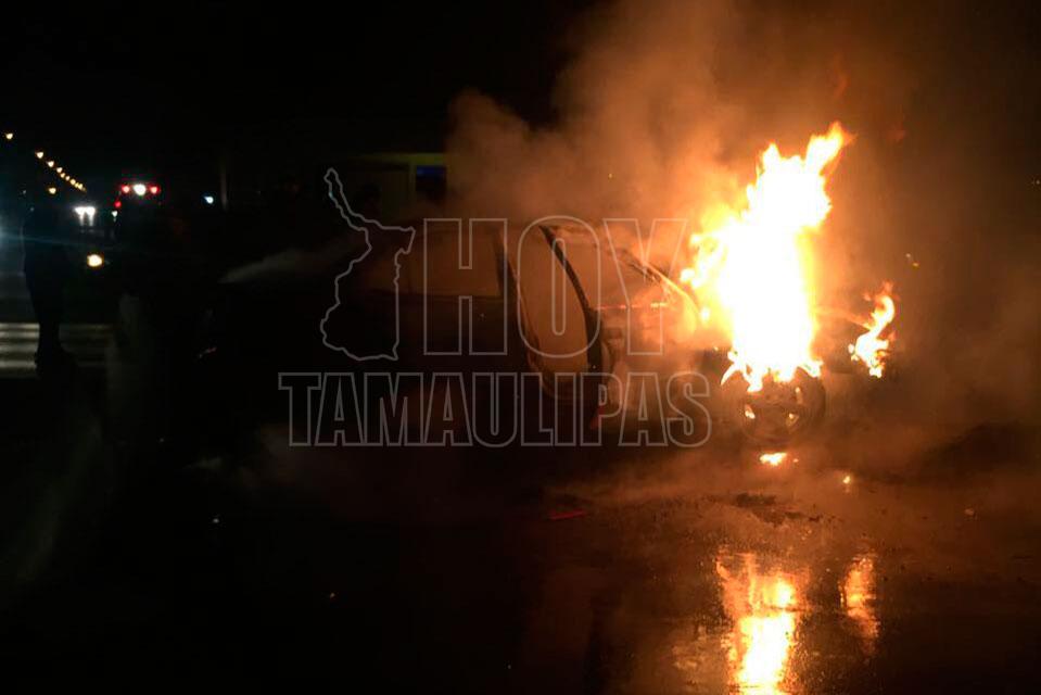 Matamoros, Tamaulipas.- En una transitada avenida de Matamoros se incendió un auto luego de que la persona que lo conducía lo estrelló contra un camellón, lo que originó la rápida movilización de los bomberos.