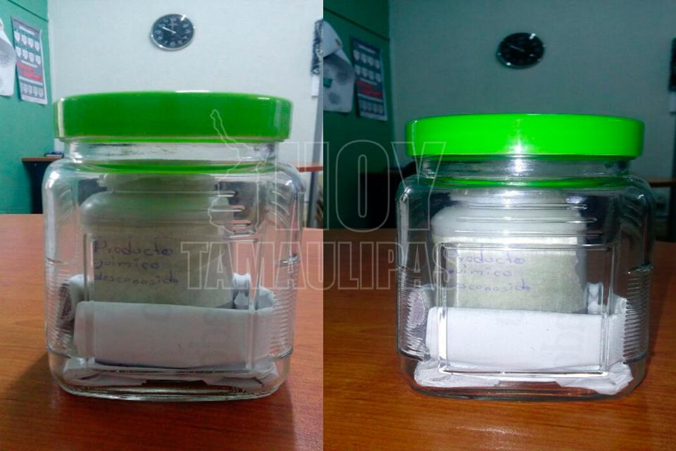 A la llegada de los elementos y analizar el contenido del frasco con capacidad de 300 mililitros, señalaron que podría tratarse de mercurio.