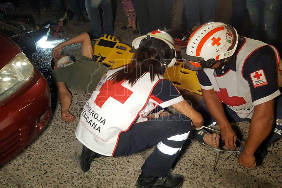 Poco después arribaron elementos de Tránsito y paramédicos de la Cruz Roja, estos últimos lo llevaron a un hospital donde lo atendieron por la fractura.