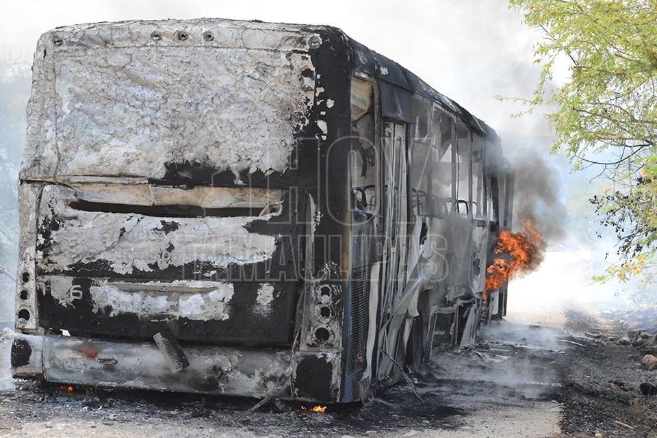 Fuego consume autobús de Transpaís en Ciudad Victoria