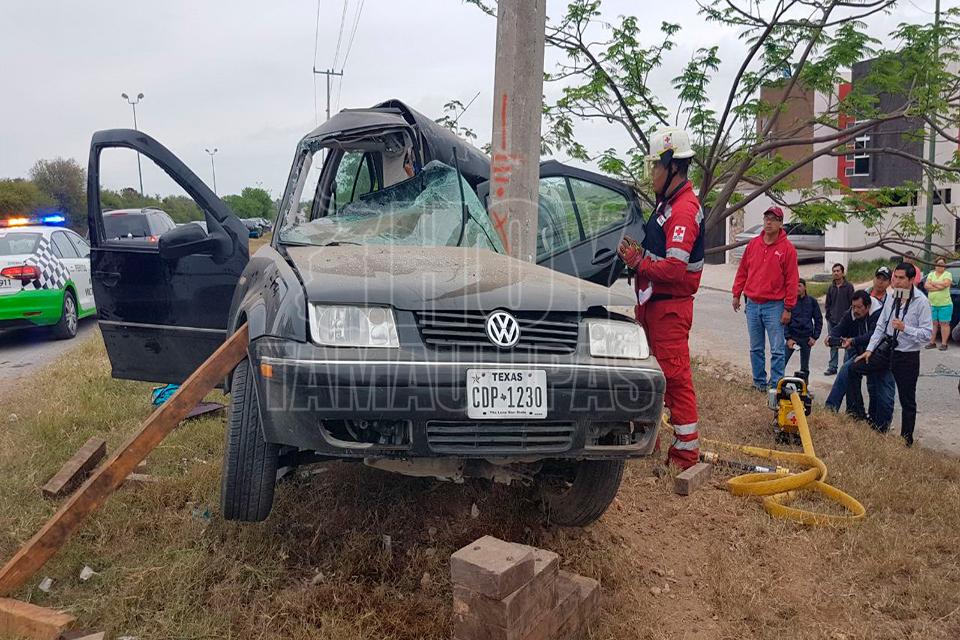 Ciudad Victoria, Tamaulipas.- Dos jóvenes resultaron gravemente heridos al quedar prensados en el automóvil donde viajaban al estrellarse contra un poste de concreto. Los hechos sucedieron en el libramiento Emilio Portes Gil y Avenida Central.