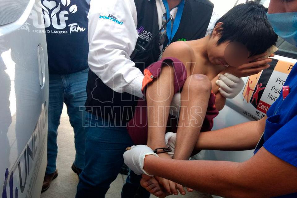 Nuevo Laredo, Tamaulipas.- Un menor de edad, al parecer autista, fue rescatado esta mañana por personal de la Unidad Especializada para la Atención de la Violencia Intrafamiliar y Violencia de Género (UNEVIG) y la Policía Estatal, luego de que lo descubrieron encadenado al suelo dentro de una vivienda ubicada al sur de Nuevo Laredo.
