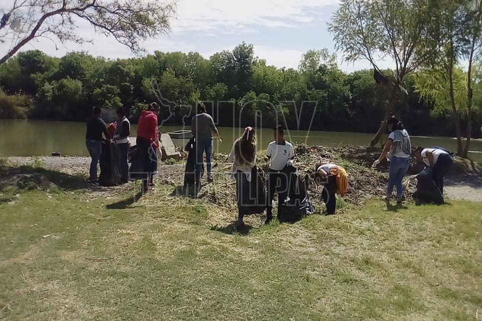 Limpian alumnos de Nuevo Laredo la ribera del río Bravo