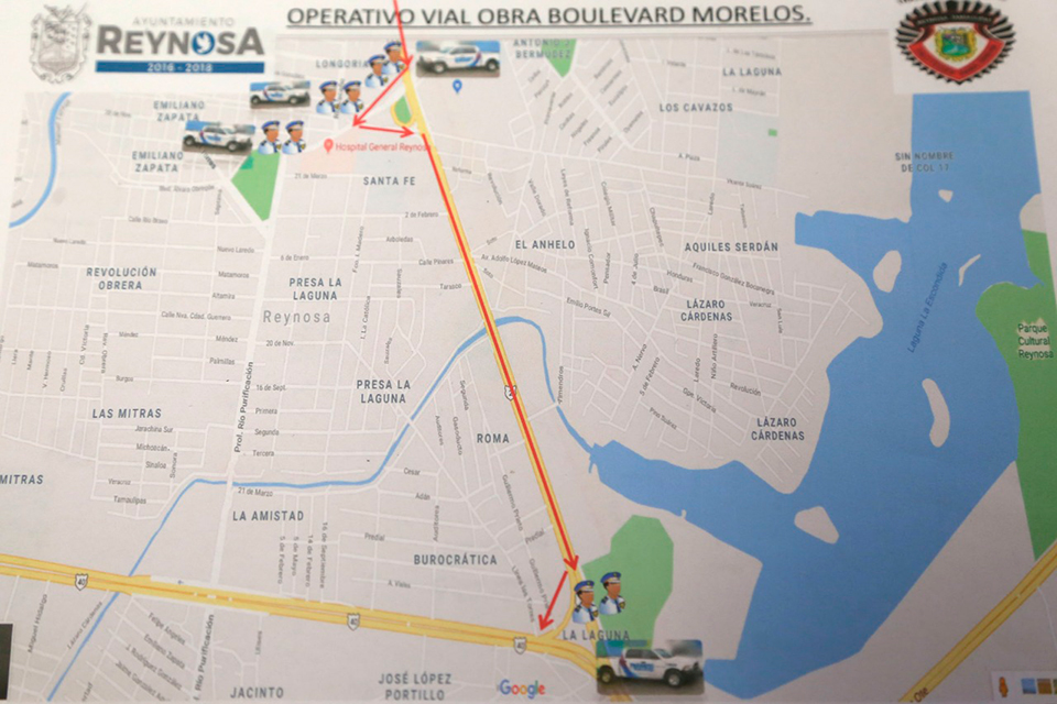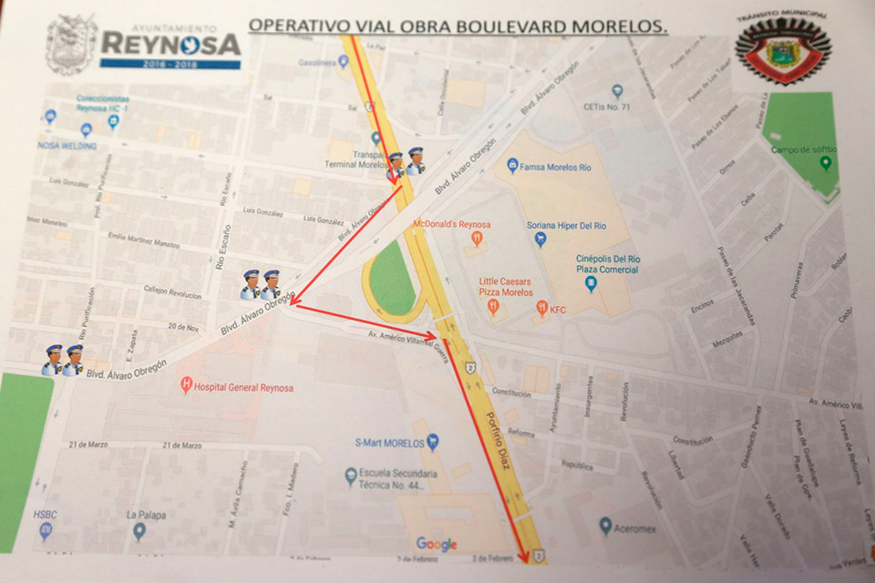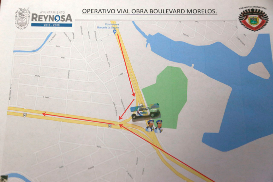 Reynosa, Tamaulipas.- El Bulevar Morelos de Reynosa quedará cerrado parcialmente por seis días a partir del 17 de marzo, para efectuar la reparación del Colector de Aguas Residuales de 91 centímetros de diámetro, en la calle Américo Villarreal.