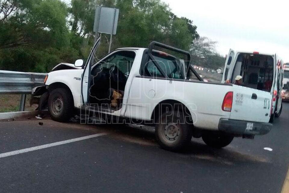 El hijo del ex diputado fue atendido por elementos de emergencias de Caminos y Puentes Federales y trasladado junto a otras dos personas que resultaron heridas, pero que iban en el carro compacto, al Hospital Civil del Tampico, “Dr. Carlos Canseco”.