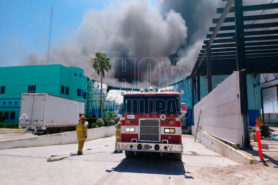 Reynosa, Tamaulipas. - Un fuerte incendio redujo a cenizas una maquiladora de papel higiénico en la ciudad de Reynosa, donde se lograron evacuar las 50 personas que estaban en el interior.