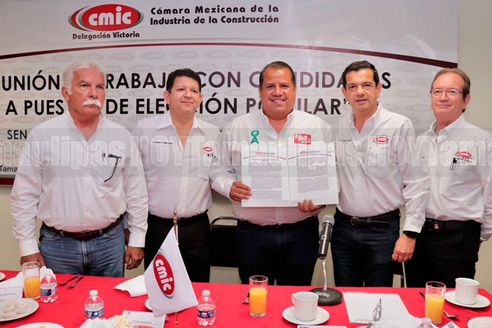 Ciudad Victoria, Tamaulipas. - El candidato del PRI a la alcaldía de Ciudad Victoria, Oscar Almaraz Smer, sostuvo hoy martes una mesa de trabajo con los miembros de la Cámara Mexicana de la Industria de la Construcción (CMIC), donde presentó un recuento de la obra pública realizada en los últimos meses y sus propuestas para los próximos tres años.