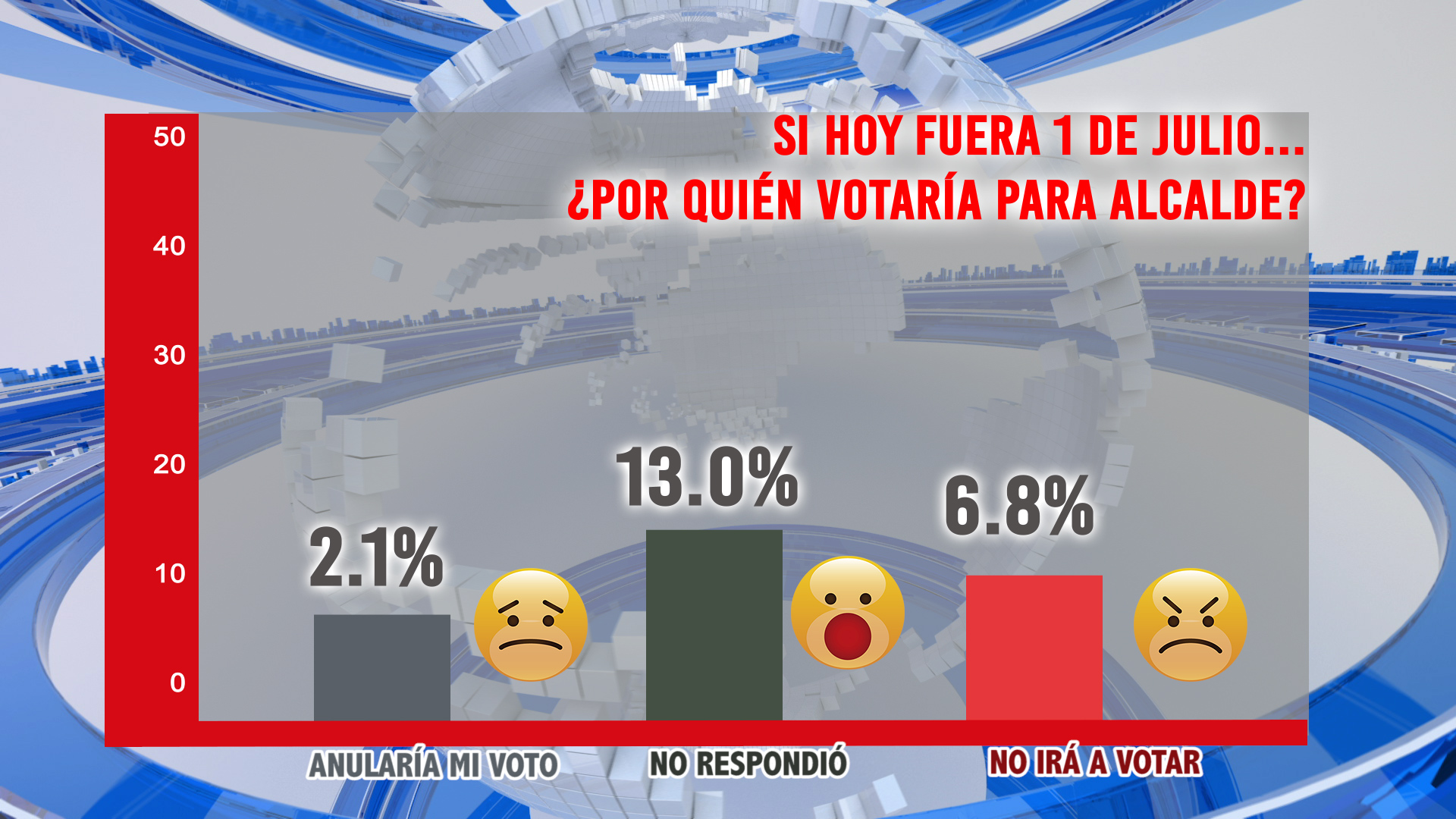 La encuesta fue practicada del 8 al 10 de junio, con la participación de 10 encuestadores y un supervisor.