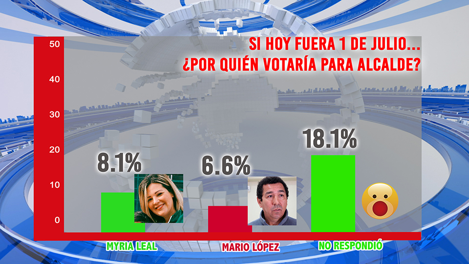 En tercer sitio aparece el independiente Humberto Rangel con el 8.3 por ciento y en cuarto lugar la candidata del Partido Verde, Myria Leal con el 8.1%.