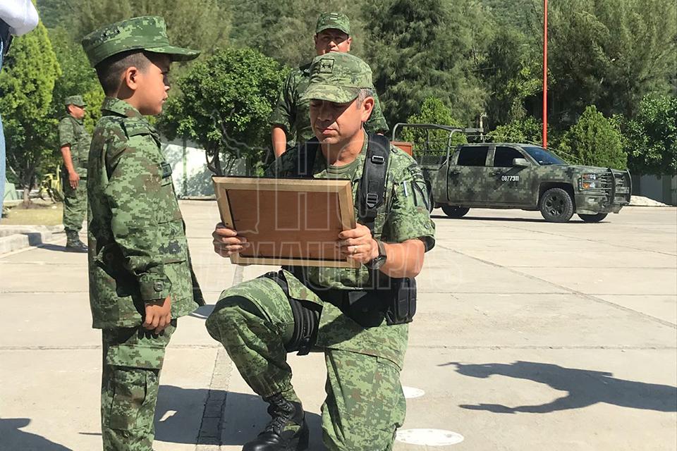 Ciudad Victoria, Tamaulipas.- Alexis Páez Alfaro, hoy cumplió uno de sus más importantes sueños, ser soldado por un día, el pequeño de apenas seis años lucha cada día para vencer la batalla contra el cáncer, pero hoy dio un paso firme en su guerra contra esta terrible enfermedad al recibir una inyección importante de motivación.