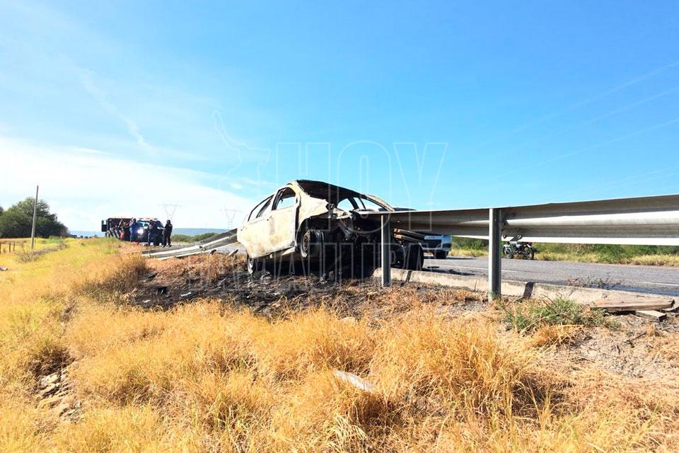 Al lugar arribaron elementos de Fuerza Tamaulipas para dar vialidad a la circulación y sacar a los lesionados del vehículo, ya que este al momento del impacto se incendió.