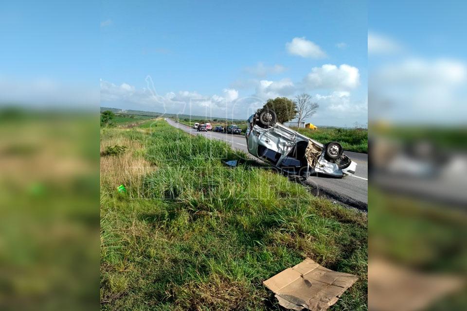 El tráiler a su vez impactó al vehículo Platina mismo que terminó volcado, mientras que la unidad de carga pesada declinó su trayectoria hacia su lado izquierdo, salió de la cinta asfáltica y terminó en un terreno de siembra.