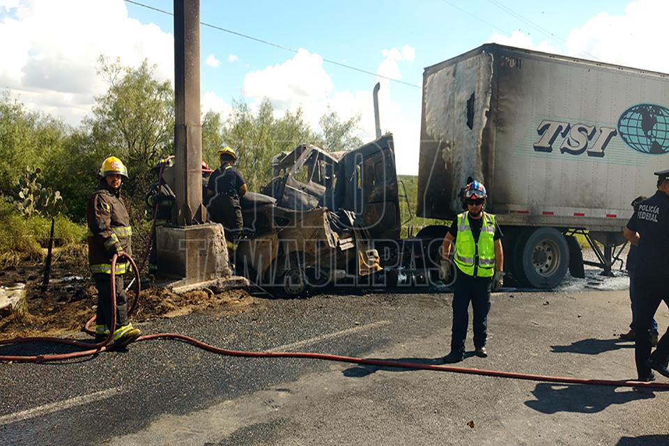 Muere calcinado al chocar con tráiler en carretera de Nuevo Laredo