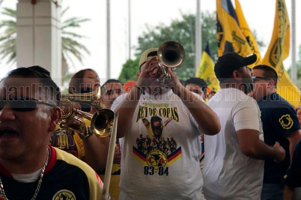 Al arribar al hotel fueron recibidos por decenas de aficionados americanistas y por integrantes de las porras de la ciudad y Del Valle de Texas, entre ellos la Monumental Del Valle.