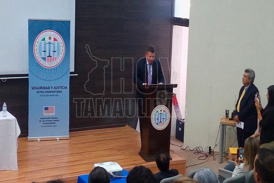 Añadió que gracias al apoyo del Consulado General de Estados Unidos en Matamoros, es que se les otorga este curso del plan Iniciativa Mérida, por lo que estarán recibiendo preparación y capacitación los fiscales federales en materia de litigación oral.