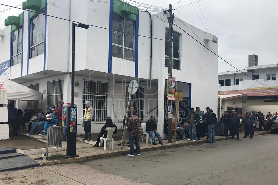 Ciudad Madero, Tamaulipas. - La falla en el sistema para el canje de placas, genera una larga fila de contribuyentes en la Oficina Fiscal de Ciudad Madero, quienes esperan para poder hacer el trámite que tiene un costo de mil 453 pesos.
