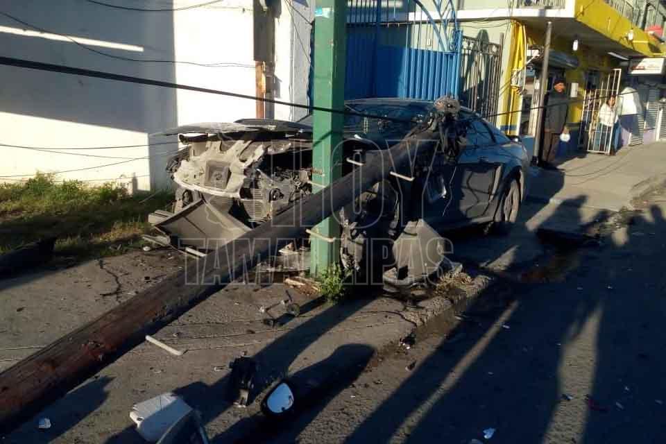 Ya sin el control del volante, Hugo se proyectó hacia un poste de madera de Telmex y lo destruyó. El auto siguió avanzando y se impactó con dos vehículos estacionados.