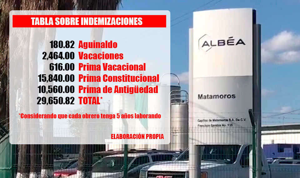 En un caso hipotético, considerando que en dicha maquiladora que cuenta con 1,500 trabajadores, entre sindicalizados y personal de confianza, si cada uno de ellos ganara 176 pesos diarios, a cada persona al indemnizarlos le tendrían que estar pagando 29,650 pesos, esto de acuerdo a la Ley Federal del Trabajo.