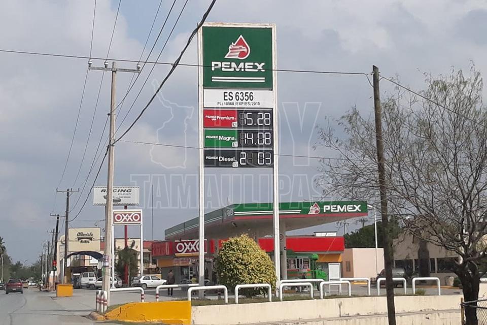 En Reynosa en costo por litro de la gasolina Magna fluctúa entre los 13.67, 13.90 y hasta 14.08 pesos por litro, en distintas estaciones de servicio.