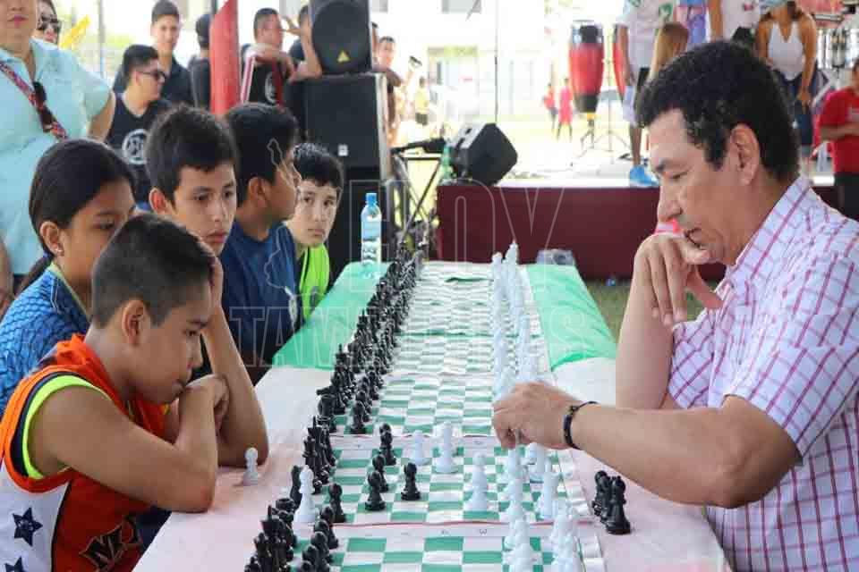 En ese mismo Tamul, el Presidente Municipal convivió y presenció las exposiciones de las diferentes disciplinas deportivas, a las que premió por su participación, entre ellas, Tae Kwon Do, box, volibol, basquetbol, fútbol, zumba, cachibol y hasta una partida de ajedrez jugó con el niño Eduardo Murillo.