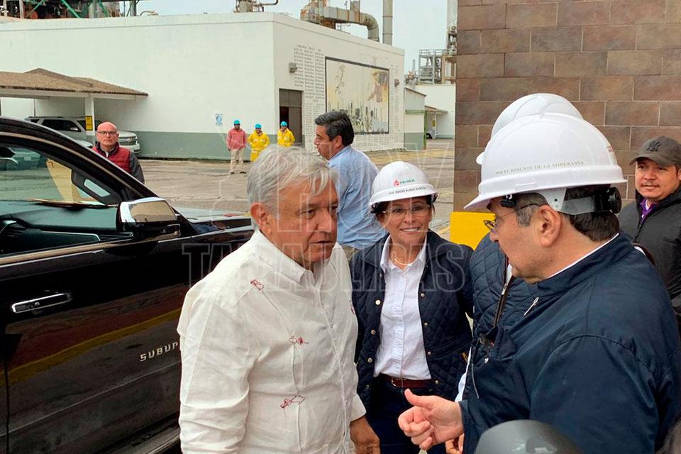 Ciudad Madero, Tamaulipas. - El presidente de México, Andrés Manuel López Obrador, recorrió esta tarde las instalaciones de la Refinería "Francisco I. Madero" en Ciudad Madero.