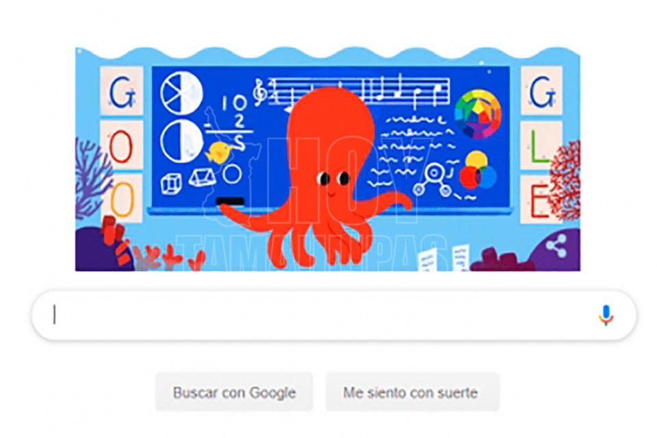 Un pulpo que enseña a pequeños peces es la imagen que se puede observar en la página principal del buscador internacional, misma que se ve en Colombia y Corea, donde también se conmemora este día.