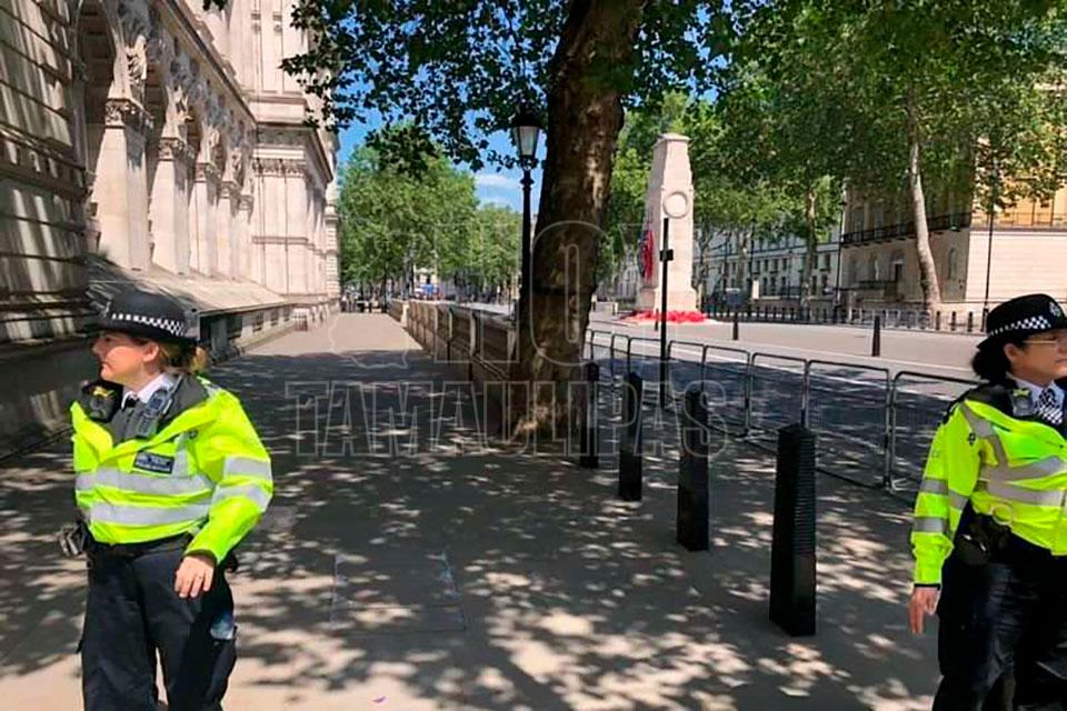 En un mensaje en su cuenta oficial en Twitter, la Policía Metropolitana informó que ha establecido cierres en las calles aledañas a Whitehall, entre ellas Downing Street, donde se encuentra la sede del gobierno británico, mientras se evalúa el "artículo sospechoso",