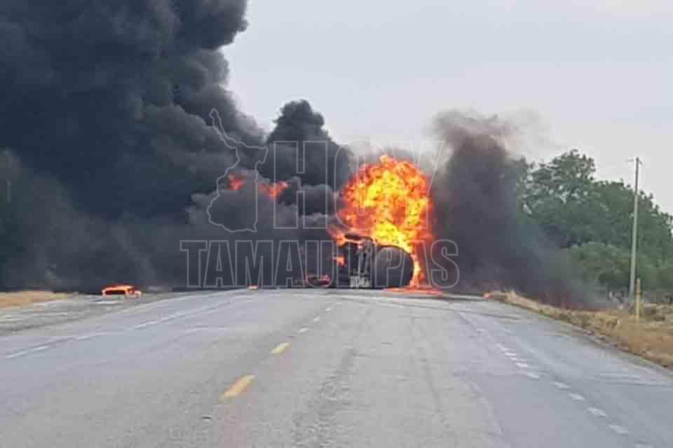 Vuelca y explota pipa en la carretera Victoria-Matamoros