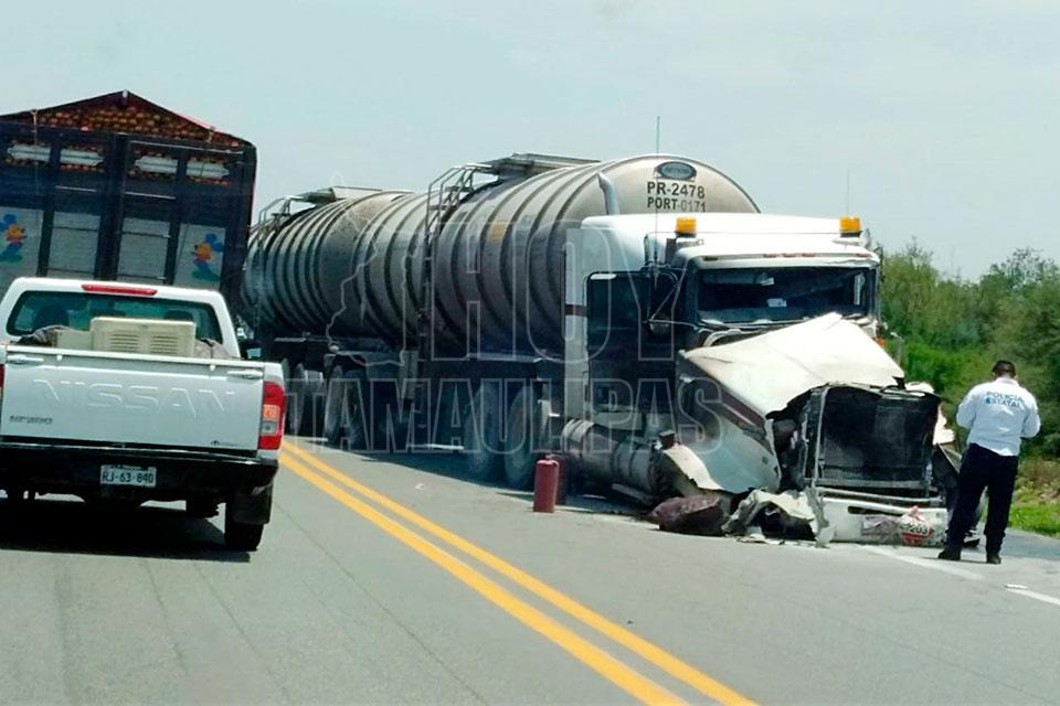 En el percance participaron un tracto camión cargado con dos auto tanques con gasolina, el cual quedó abandonado por su conductor.