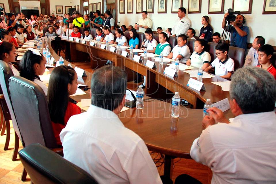 Ciudad Victoria, Tamaulipas. - El Gobierno del Estado, el Instituto Electoral de Tamaulipas y el Ayuntamiento de Victoria, brindaron a los niños de Victoria “Un día en el Cabildo”; espacio de expresión democrática, donde alumnas y alumnos del nivel primaria con el más alto aprovechamiento académico, ejercen funciones como integrantes del Cabildo, que les permite aprenden a plantear y discutir los problemas que aquejan a la comunidad, además de proponer posibles soluciones.