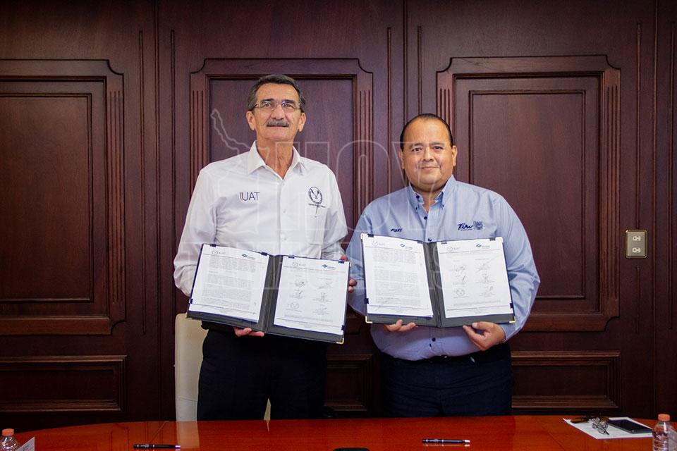 Con ese objetivo, el Rector de la UAT José Andrés Suárez Fernández presidió la firma del convenio con el Director General del Conalep en la entidad, Agustín de la Huerta Mejía, durante ceremonia verificada en la Sala de Juntas de la Rectoría en esta capital.