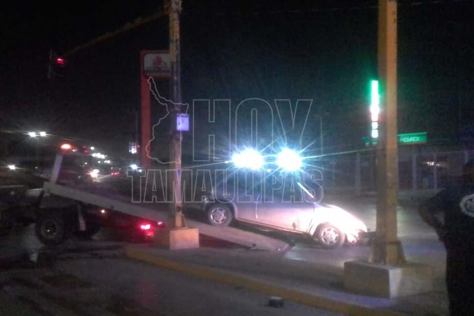 Choca contra semáforo y deja abandonado su Chevy en Altamira