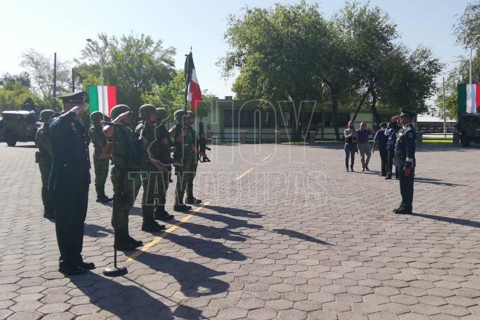 Nuevo Laredo, Tamaulipas. - El coronel diplomado del Estado Mayor, Raúl Olguín Delegado, rindió protesta como comandante del 16 Regimiento de Caballería Motorizada en Nuevo Laredo.