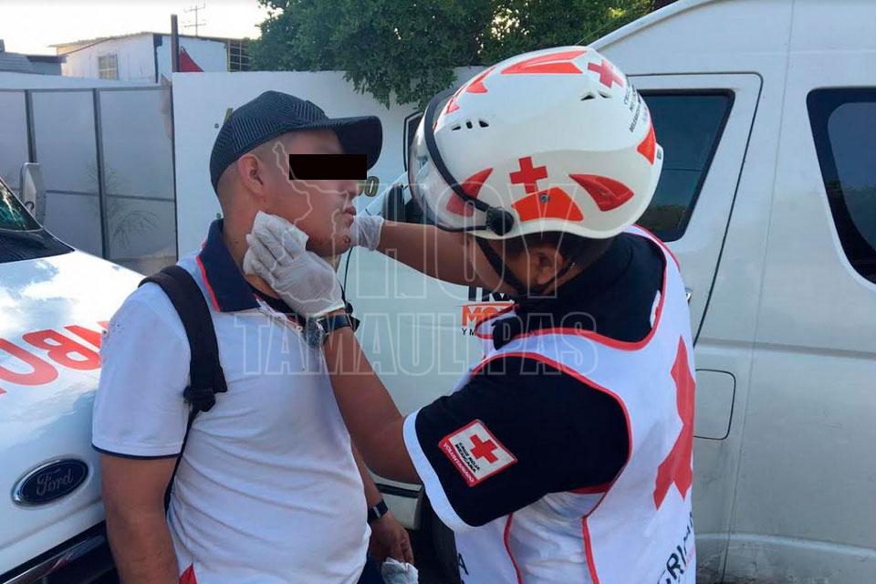 Paramédicos de la Cruz Roja auxiliaron al motociclista que sangraba de la barbilla del golpe que se dio, no siendo necesario llevarlo a un Hospital.