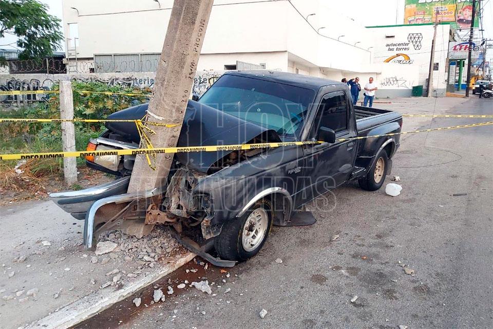 Tampico, Tamaulipas. - Daños materiales de consideración, fue el resultado al estrellarse el chofer de una camioneta con un poste de concreto y el cual presuntamente iba bajo los efectos del alcohol, en la carretera Tampico - Mante.
