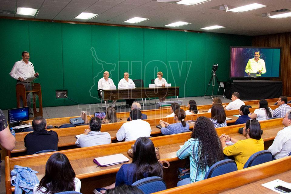 Acompañado por el Director de Calidad y Educación en Salud, Francisco Javier García Luna Martínez, representante de la Secretaría de Salud, Gloria de Jesús Molina Gamboa, el Rector dio la bienvenida a los participantes en la sede del Centro de Excelencia del Campus Victoria, y por videoconferencia a las sedes de Reynosa y Ciudad Mante.