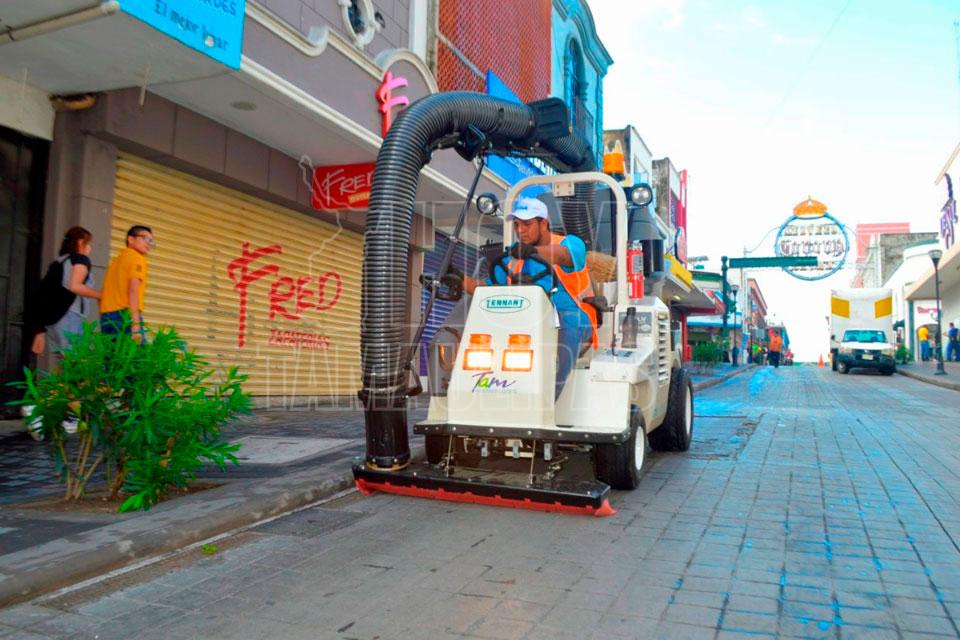 Tampico, Tamaulipas. - El Ayuntamiento de Tampico adquirió un novedoso equipo de limpieza que es utilizado en el Centro Histórico, informó el secretario de Servicios Públicos municipal, José Schekaiban Ongay.