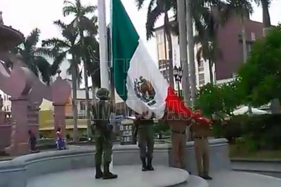 En el momento que la bandera nacional fue izada a media asta, fue entonado por todos los presentes el himno nacional mexicano, y enseguida se realizó un toque de silencio por parte de la banda de guerra del 15° Batallón de Infantería en recuerdo de las víctimas mortales de ambos temblores, concluyendo de este modo la ceremonia realizada en la plaza de Armas.