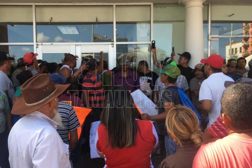 Reynosa, Tamaulipas. - Los carretoneros de basura estuvieron manteniendo cerradas las puertas de la Presidencia de Reynosa durante una hora aproximadamente, hasta que arribaron elementos de la Policía Estatal para desalojar el acceso del edificio.