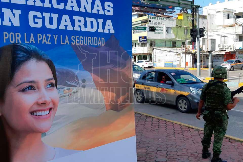 Ciudad Madero, Tamaulipas. - Elementos de la Secretaría de la Defensa Nacional (SEDENA) realizan en la explanada de la Presidencia de Ciudad Madero, la entrega de información para buscar aspirantes a la Guardia Nacional (GN).