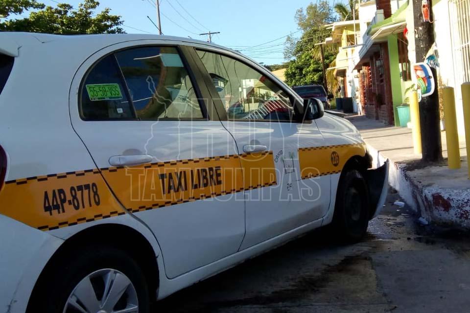 Se trata de un carro de la marca Nissan March habilitado como taxi, mismo que era conducido por la primera de las arterias sobre su sentido de sur a norte y al llegar al cruce, otra unidad particular se pasa el alto correspondiente, obligando al taxista a realizar una temeraria maniobra con la que terminó por impactarse en la banqueta, dañando la defensa del vehículo de renta.