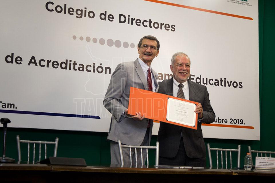 El titular del COPAES visitó las instalaciones de la UAT en esta capital, donde acudió invitado por el Rector José Andrés Suárez Fernández para participar como expositor en la 8va. Reunión del Colegio de Directores de las 26 facultades, unidades académicas y escuelas que integran la máxima casa de estudios del estado.