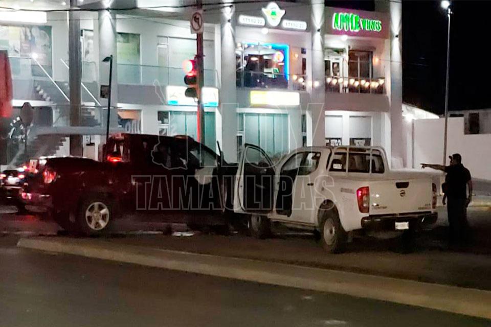 Tras chocar, se inició el intercambio de disparos y dos pistoleros huyeron del lugar.